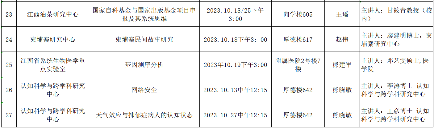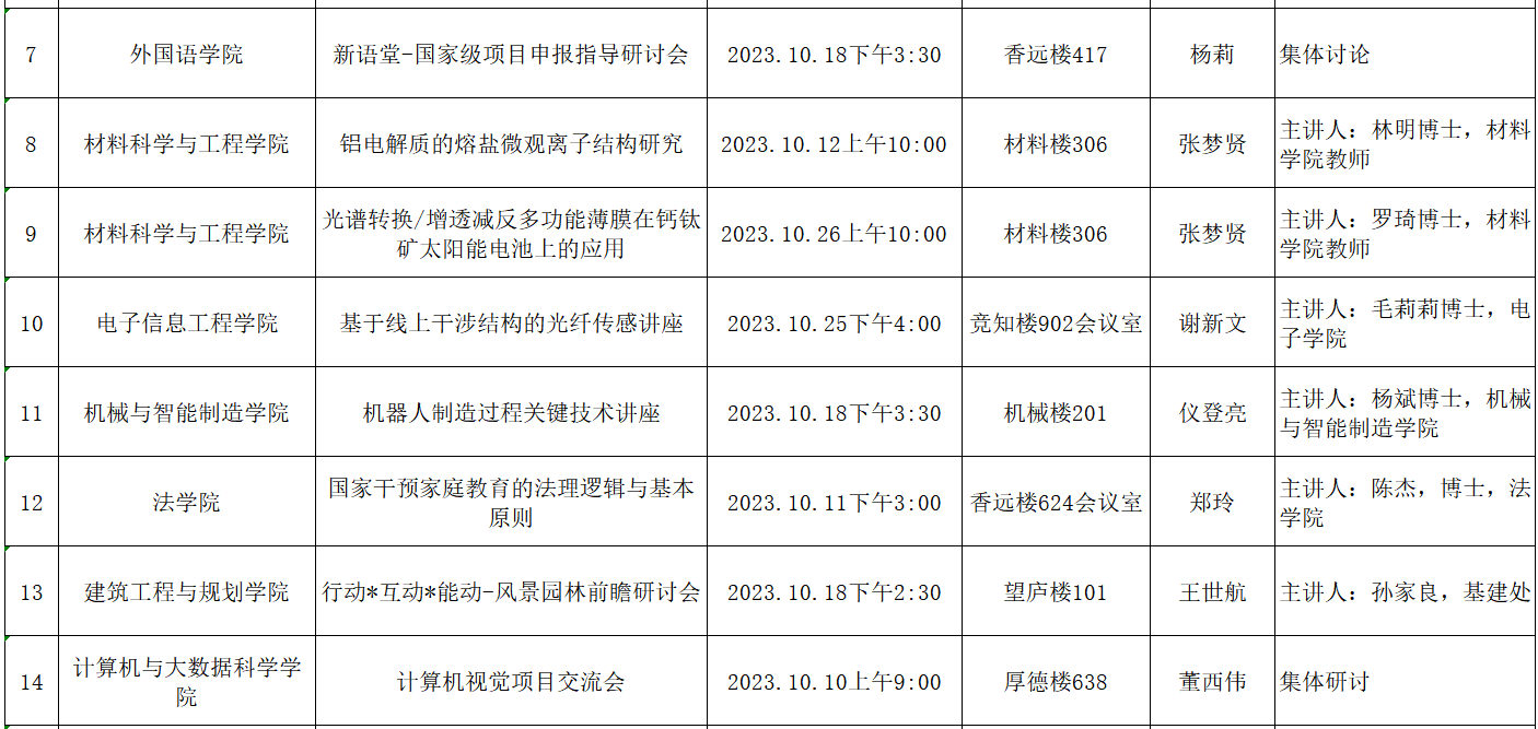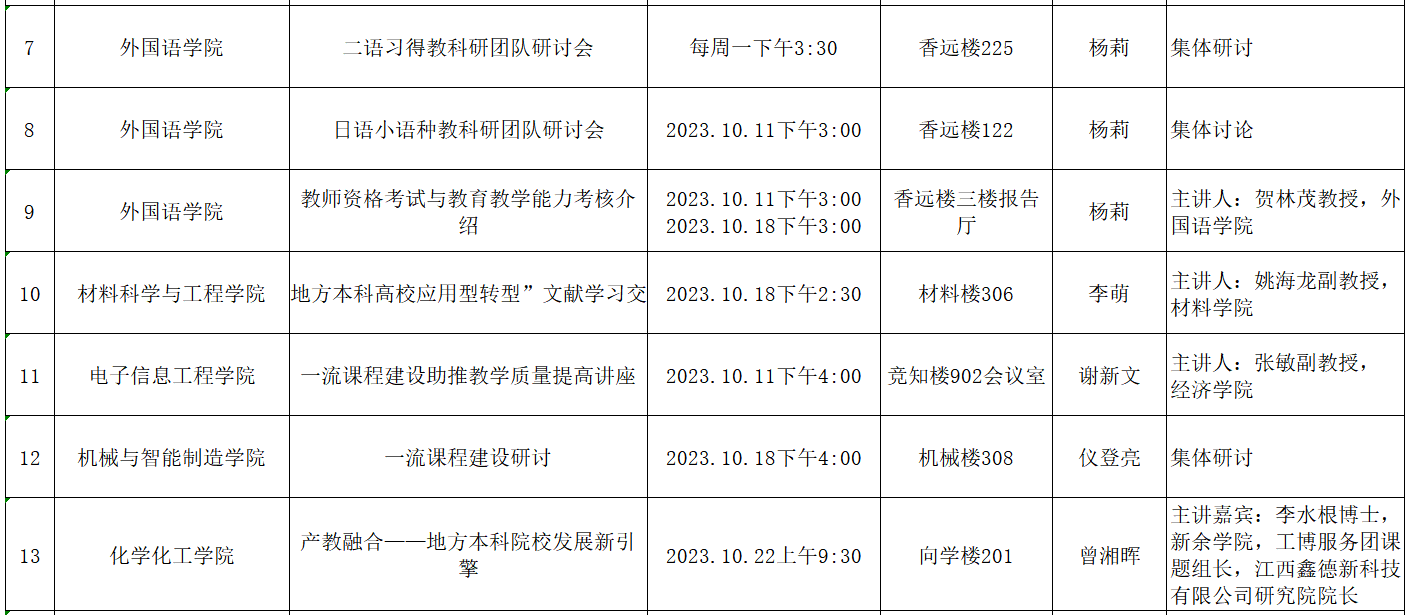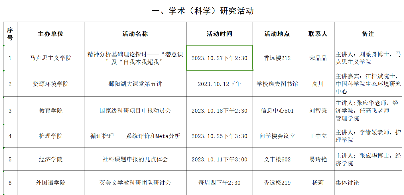 九江学院2023年10月学术(科学)研究、教学研究活动预告