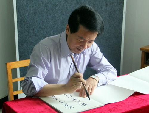 校党委书记郑翔对此次展览的作品给予了高度评价,在参观中,郑书记对部分作品与张佳龙进行亲切交流,赞扬了张佳龙同学这四年取得的优异成绩和在摄影立意和构思上的突破,肯定了他创作题材的广度和作品的思想深度,并就作品取名提出了宝贵建议,鼓励他在今后的人生道路上继续开创属于自己的新方向和目标。参观结束时,郑书记现场欣然为张佳龙摄影展题字:“镜焦无浅见,图照有深思”,希望他今后拍摄和创作出更多更有特色和意义的作品,勇敢追逐属于自己的梦想。