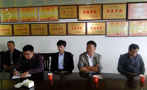 座谈会上,武宁县委常委、农工部部长刘斌代表县委县政府感谢九江学院的支持和帮助,希望学校能够把产业、新农村建设和旅游业很好结合起来,为东山村的可持续发展提供积极的支持。官莲乡党委书记李刚在讲话中,感谢九江学院对官莲乡和东山村的大力支持和帮助,希望在旅游规划、蔬菜基地建设、村医培训、道路畅通等方面得到九江学院的支持。东山村支书陈希才汇报了我校扶贫工作取得的成绩和目前存在的困难,表达了对九江学院积极采取措施精准扶贫的感谢和需要九江学院继续帮助解决的一些问题。