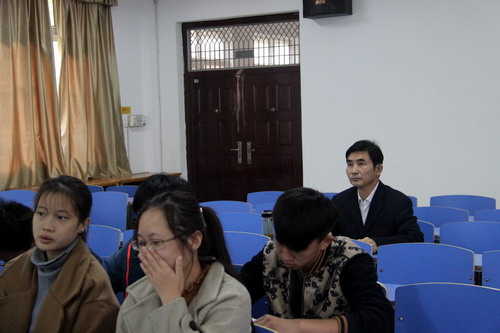 11月2日上午,校纪委书记魏立平在竞秀楼101教室听取了李玉林教授讲授的《毛泽东思想和中国特色社会主义理论体系概论》课程,马克思主义学院副院长郑小东一同听课。