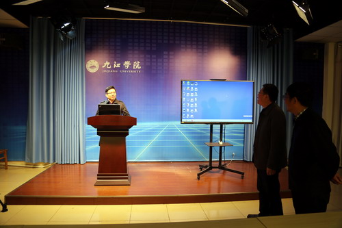 柬埔寨王家孔子学院院长谢莫尼勒还来到数字传媒中心,参观了数字传媒实验教学中心的多个实验室,并体验了数字教学资源的制作过程。