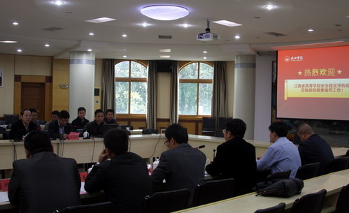 纪岗昌副校长代表学校党政向考评组来校检查指导工作表示欢迎。他说,九江学院非常重视学校的安全稳定工作,多次召开安全稳定工作座谈会和协调会,制定了一系列安全稳定工作的制度和措施,并进一步强调了维护安全稳定对学校办学和人才培养的重要性,希望考评组对我校的安全稳定工作和其他相关工作多提宝贵意见和建议,也要求相关部门要以检查评估为契机,进一步提升工作水平和能力,确保学校平安、和谐、有序。
