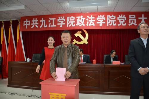 大会还通过了委员候选人名单与总监票人、监票人名单。根据《中共九江学院政法学院党员大会选举办法》,大会以无记名差额选举的方式,经过全体正式党员投票,选举产生了新一届中共九江学院政法学院委员会委员(以姓氏笔画为序):汪力平、李雪、郑小东、宛锦春、高翔、曹钟安、詹建志。
