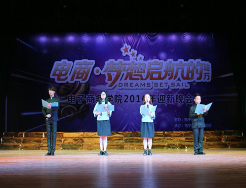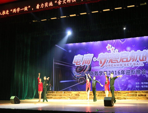 11月18日晚,电子商务学院在大礼堂举行2016年迎新晚会。副校长纪岗昌、陶春元、夏启国到场观看了晚会。学工处处长刘平,校团委副书记赵宇剑、电子商务学院党政领导、毕业生就业招聘会企业代表及电子商务学院全体师生观看了演出。