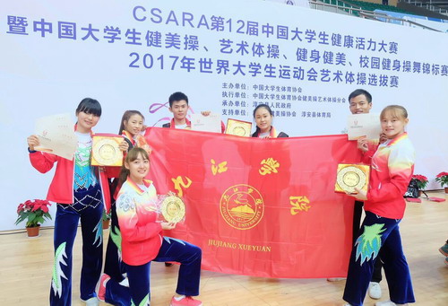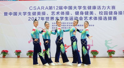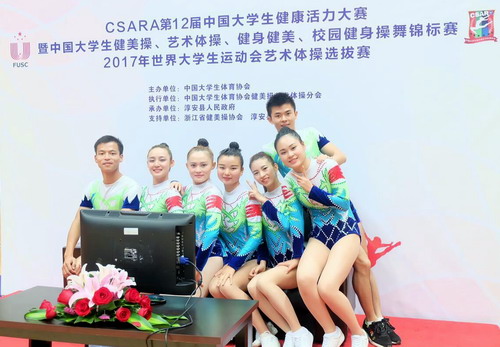 11月12日~19日,第12届中国大学生健康活力大赛暨2017年世界大学生运动会艺术体操比赛在浙江省淳安市举行,我校健美操队奋力拼搏,获得女子五人操第三名和混合三人操第四名的好成绩,这是我校健美操队在此类比赛中取得的历史性突破。