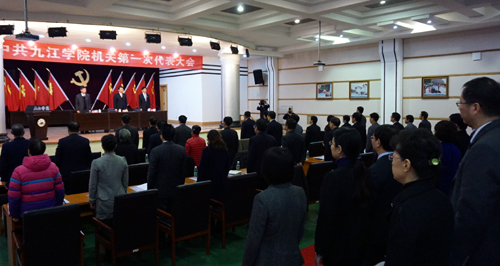 11月24日上午,中共九江学院机关第一次代表大会在行政楼二号会议室隆重召开。本次大会,是在我校全面总结“十二五”发展成就、实施“十三五”规划开局之年、学校发展进入“舍大转强”关键时期,召开的一次十分重要的大会。大会的主题是:深入学习贯彻习近平总书记系列重要讲话精神,全面贯彻江西省第十四次党代会和九江市第十一次党代会精神,认真落实学校党委各项决策部署,紧紧围绕学校中心工作,坚持服务改革发展大局,更好推进机关党的建设,为实现我校“十三五”发展目标而继续奋斗。校党委书记郑翔出席大会并讲话,大会分别由查振华同志和冯健同志主持。本次大会,出席会议的代表应到105名,实到104名,符合有关规定,1名特邀代表列席大会。