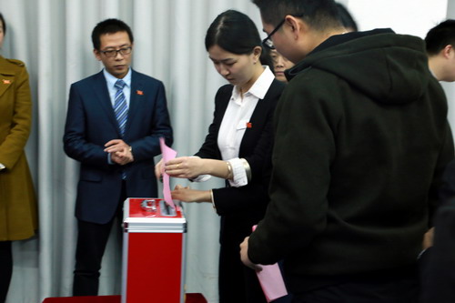 大会酝酿通过了文学与传媒学院新一届党委委员候选人名单,表决通过了总监票人、监票人名单。根据《中共九江学院文学与传媒学院党员大会选举办法》,以无记名差额选举的方式,由全体正式党员投票选举产生了新一届中共九江学院文学与传媒学院党委会委员(以姓氏笔画为序):田中兴、汤红莲、朱全国、吴国富、吴疆、周子渊、郭英俊。