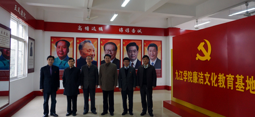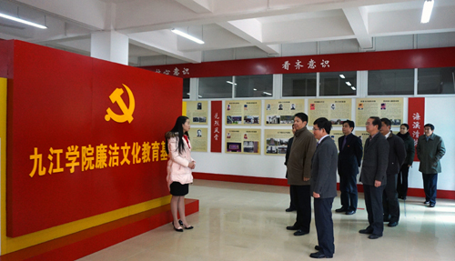 我校廉洁文化教育基地始建于2008年,2016年重新设计开放,占地约200平方米。基地以“挖掘濂溪资源、弘扬廉洁文化”为主题,目的是打造九江学院廉洁文化品牌,宣传九江学院党风廉政建设和反腐败工作,传播正能量。基地内部按照功能划分为“语录区”、“形势区”、“宣誓区”、“警示区”、“濂溪文化展示区”和“九江学院党风廉政建设和反腐败工作展示区”六个部分,配备专职讲解员,力争为全校党员干部、学生党员和其他师生员工开展廉洁文化教育活动提供优质服务。