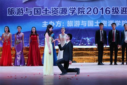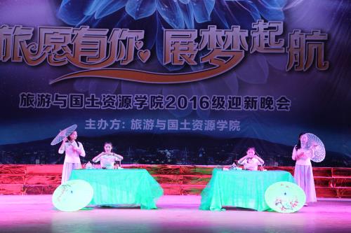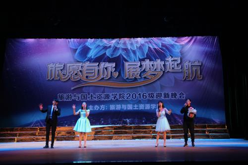 “旅愿有你,展梦起航”。11月在24日晚,旅游与国土资源学院在主校区大礼堂隆重举行了2016级迎新晚会。副校长纪岗昌、王万山到场观看,学生处、校团委负责人、旅游与国土资源学院党政领导以及学院全体师生共同观看了演出。