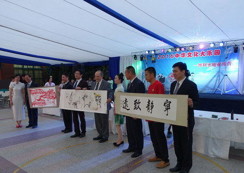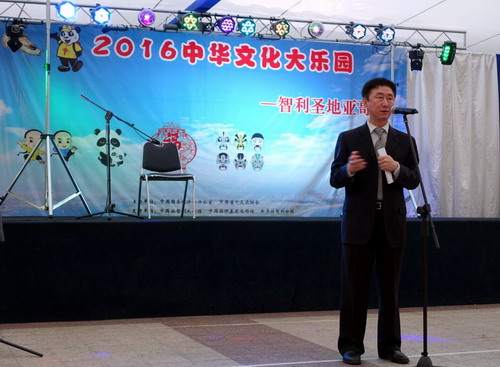 中国驻智利大使馆李宝龙大使在致辞中表示,中华文化大乐园活动是国侨办一项重要的中华文化品牌推广活动,此次国侨办文化司雷振刚司长亲自率队江西教师代表团一行不远万里来智举办“中华文化大乐园”夏令营活动,充分体现了国侨办领导对旅智侨胞的亲切关爱和工作的大力支持,李宝龙大使十分感谢智利北京海外联合会、江西省外侨办以及合作外方学校等为此次大乐园活动的顺利开展做出的大量工作和付出的辛勤努力,大使馆将在国侨办有关领导的支持和关心下继续为旅智侨胞做好汉语教学文化推广活动,最后他预祝此次2016“中华文化大乐园—智利圣地亚哥营”夏令营活动取得圆满成功,祝营员们度过一个难忘愉快的假期。