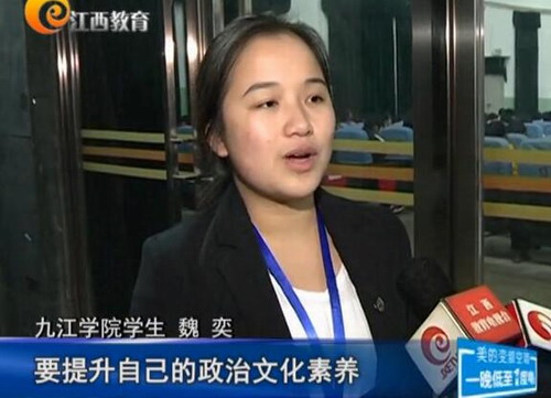 九江学院学生魏奕:促使我们在今后的学习和工作中,提升自己的政治文化素养,不断地去奉献他们,奉献社会。