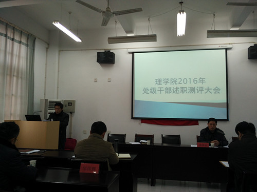 会上,邹国辉代表理学院党委领导班子作2016年度党委工作总结,周金贵就行政班子作2016年工作总结,理学院副院长马军、魏健宁、査代奉就个人廉洁自律情况和年度分管工作进行了述职,并在全体教职工范围内进行测评。