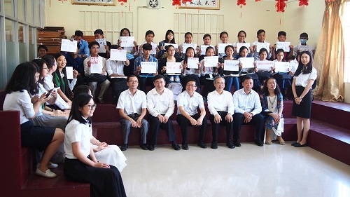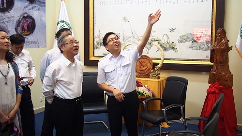 随后,杨慧文副厅长一行访问了孔子学院,谢莫尼勒院长和夏修龙院长介绍了孔子学院自创办以来的发展历程、现状以及各教学点的教学情况,播放了介绍孔子学院的视频。访问团还参观了孔子学院教室、计算机室和图书馆等设施,观看了孔子学院开展以“我运动,我健康”为主题的文化教学活动。杨副厅长对柬埔寨孔子学院所取得的成绩给予充分肯定,称之为全球最好的孔子学院之一。