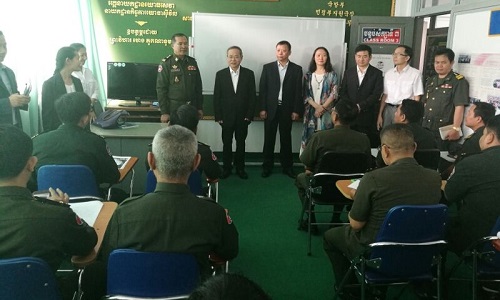 恰逢柬埔寨孔子学院国防部汉语教学中心开班之际,杨慧文副厅长一行在柬埔寨国防部训练局副局长宋提(Sorn Thy)中将的陪同下出席了汉语中心开班仪式,杨副厅长鼓励学员努力学习,争取机会到中国进修汉语,加强中柬交流。(田唱)