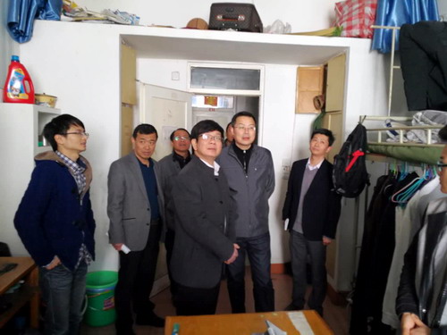 检查过程中,王万山副校长详细查看了宿舍楼整体卫生情况和各处卫生死角。对环境整洁的宿舍提出了表扬,对发现的问题及时指出,并要求有关学院立即整改。在检查的同时,王副校长与同学们亲切交谈,勉励他们养成及时清扫,保持宿舍整洁的好习惯。