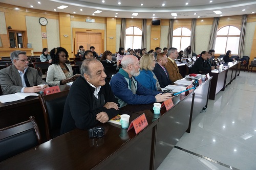 刘晓东校长首先发表致辞,他代表全校师生对来自美国佐治亚州萨凡纳市的访华团成员们表示热烈的欢迎。接着,他对九江学院的历史文化和发展情况作出了介绍。他提到,名山、名江、名湖、名城,造就了九江学院的灵气,尤其是具有千年历史,享有天下书院之首美誉的白鹿洞书院,更为学院赋予了深厚的文化气息和办学氛围。最后他谈到,为使得访问团成员能够更好地体验中华文化,我校对这次访华团代表的行程做了精心安排:既有自然风光欣赏,又有人文景观体验,更有多场文化讲座,相信各位成员此行一定会收获颇丰,也希望大家继续为萨凡纳州立大学孔子学院的各项工作提供支持和帮助。