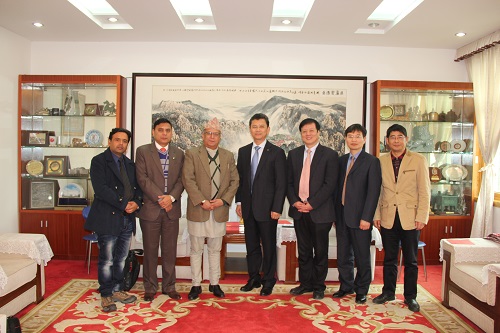 刘晓东校长代表全校师生热烈欢迎尼泊尔中西部大学吴鹏德校长此次来访,他简要介绍了九江学院基本情况,并认真听取了尼泊尔中西部大学校方的来访目的和真诚愿望。他希望借此契机促成两校间在医学教育等多领域的合作交流,同时向对方院校积极寻求与我校共建孔子学院的意愿和努力表示感谢,他表示因我校已经承办了两所孔子学院,故申请再次承办孔子学院国家汉办可能会有所限制,报批可能会有一定难度,但我校会积极探索其他途径和方式开展与尼泊尔中西部大学在各方面的教育合作交流,实现双方优势互补。他表示,中尼两国睦邻友好,中国政府又积极推进“一带一路”战略,作为“一带一路”沿线国家,中尼院校间有着非常良好的合作基础和广阔的发展前景,他希望九江学院和尼泊尔中西部大学能够共同合作,从启动医学教育项目着手,还可围绕汉语国际教育、师生交换和尼泊尔学生读研项目等展开其它多领域的合作与交流。