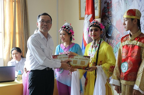 经过激烈的角逐,2017 “汉语桥”世界大、中学生中文比赛柬埔寨赛区预赛共有16位选手成功晋级决赛,柬埔寨王家研究院孔子学院中方院长夏修龙教授为他们颁发了晋级卡。