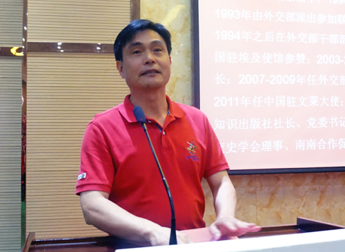 5月26日晚,原驻柬埔寨大使张金凤、外交部世界知识出版社原社长闵永年做客我校157期濂溪讲坛,在香远楼三楼报告厅为我校师生带来了一场题为“柬埔寨历史文化及中国柬埔寨双边关系”的精彩讲座。讲座由副校长杨耀防主持。