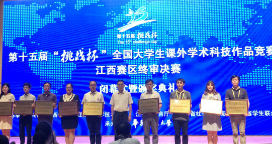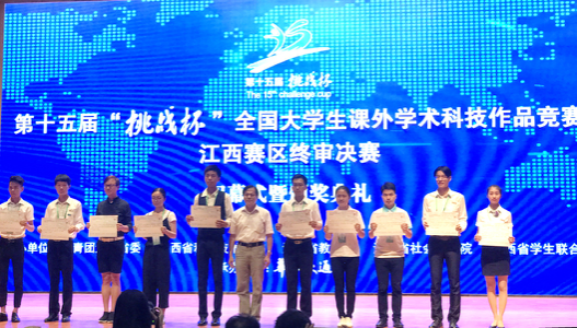 6月4日,由共青团江西省委、江西省科学技术协会、江西省教育厅、江西省社会科学院、江西省学生联合会共同主办的2017年第十五届“挑战杯”全国大学生课外学术科技作品竞赛江西赛区终审决赛在华东交通大学落下帷幕。共有来自全省70所高校的332件作品进入终审决赛。经过激烈角逐,我校最终获得一等奖1项、二等奖5项、三等奖12项,先进个人1名,学校获得本科组“优秀组织奖”。