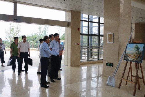 6月6日上午,艺术学院毕业展览在艺术学院新美术展厅隆重开幕。下午,校党委书记赵伟同志在党委办公室主任刘遵海的陪同下,来到展厅,观看了毕业展。艺术学院院长吴维勇、党委书记王春生和副院长虞斌接待了赵书记一行,并陪同参观。