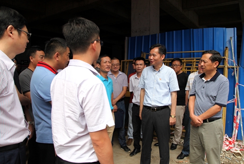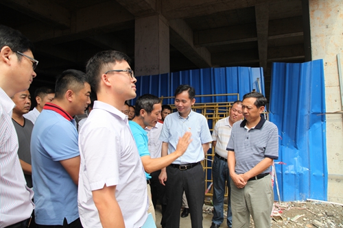 6月26日上午,九江市副市长孙金淼一行到濂溪区“新天地”项目工地,调研查看并了解该项目一护坡山体因连日降雨而再次发生大面积塌方情况,并现场指导防治工作。九江学院党委书记赵伟、副校长夏启国,以及学校党院办、保卫处、基建处、国资处、后勤管理处等相关部门负责人等陪同调研。