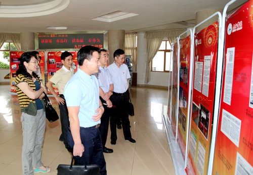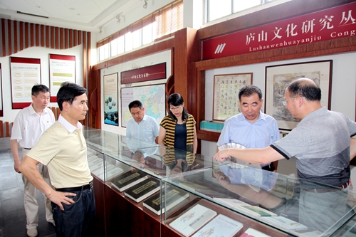座谈会开始前,督查组一行在行政楼一楼大厅参观了“喜迎十九大。 再创新辉煌----九江学院贯彻落实全国全省高校思想政治工作会议精神图片展”。座谈结束后,督察组一行还实地考察了校友创业成果展和两南山庐山文化研究中心。