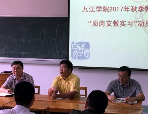 会上,陈春生副校长强调,支教顶岗实习是我校积极参与建设与振兴苏区发展战略,对口支援赣县建设工作的一部分。赣县区是一个山清水秀的好地方,同学们在外实习代表了学校的形象,要虚心求教、努力学习和认真工作,展现九江学院学子的良好风采。在外实习,要注意自身安全,特别是交通安全等。最后,陈副校长预祝同学们顶岗支教实习取得圆满成功并平安返校。