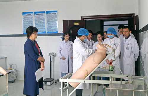 汇报会结束后,每位专家对口相应基地,深入临床、医技等相关科室以及临床技能中心、住培学员公寓等处展开了细致全面的检查评估。检查内容包括临床医学院/附属医院住培文件及相关资料、教学查房和病例讨论等,并在现场对学员进行了心肺复苏、胸腔穿刺、换药等相关技能考核以及理论考核。同时,专家也与部分带教老师及住培学员进行了访谈,详细了解该院住院医师规范化培训实施情况。