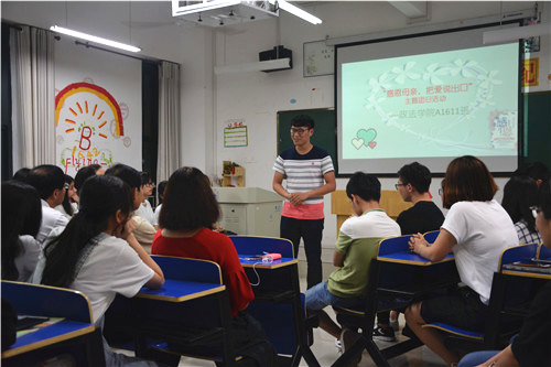 在分享讨论环节里,魏立平副书记回顾了A1611班团支部历次的主题团日活动,充分肯定了主题团日活动的意义。他分享了自己与母亲的小故事,多年来与家人用实际行动诠释对母亲的感恩。魏书记通过对比中西文化差异,展示了中国“孝”文化的博大精深与源远流长。“我们的爱是溪流,母亲的爱是海洋”。最后,魏副书记为同学们朗诵了一首汪国真的《母亲的爱》,大家无不被真情实意所感动,体会到母爱无疆。