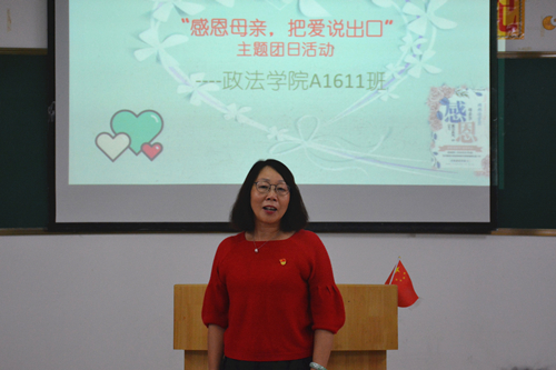 “我们可以走得很远很远,却总也走不出,母亲心灵的广场。”在政法学院“感恩母亲,把爱说出口”主题团日活动上,校党委副书记魏立平饱含深情的朗诵,使在场师生不禁潸然泪下。为了培养大学生知恩感恩的良好品德,弘扬中华民族传统孝道文化,5月13日晚,政法学院A1611团支部在八里湖校区综合楼422教室开展了 “感恩母亲,把爱说出口” 主题团日活动。校党委副书记魏立平在八里湖校区管理办公室书记邓燕的陪同下参加了本次团日活动,政法学院党委书记高翔、团委刘梦老师和班主任李仲文老师也参加了活动。