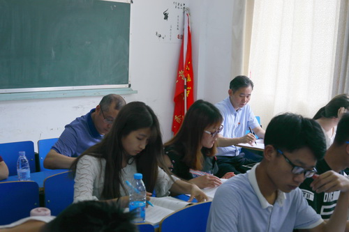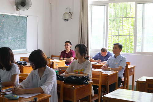 6月6日下午,校党委书记赵伟在教务处负责人的陪同下在竞秀楼随堂听课。