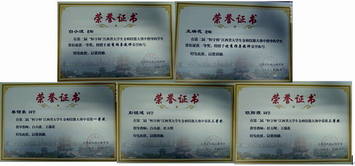 我校机材学院由白小波、王瑞花和杜大明老师带队参加了比赛,经过激烈的比赛,最终蔡佰豪同学获一等奖,彭铭建、欧阳霞同学获三等奖。白小波、王瑞花被评为优秀指导老师。
