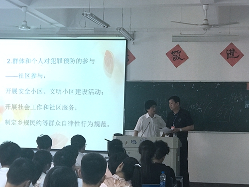 下午第七节课,周忠伟教授来到艺术学院西105教室听取了政法学院教师曹卫平主讲的《教育心理学》课程。随后,第八节课,周忠伟教授来到香远楼405教室,听取了政法学院刘士国老师主讲《犯罪学》,周教授与两位老师进行了简要交流,并认真检查了教学大纲和授课计划。