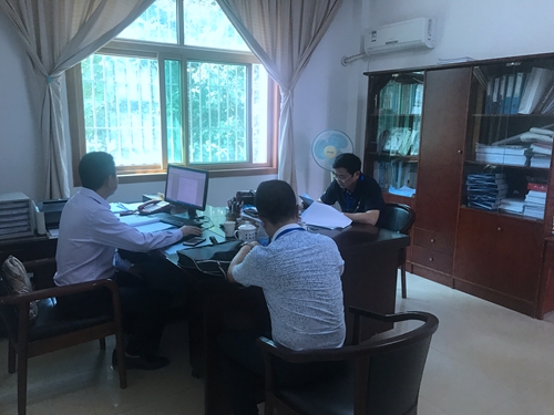 6月11日上午,本科教学工作审核评估预评估专家、江西警察学院副校长周忠伟教授在旅游学院副院长张辉的陪同下,到学校档案馆、党办、院办相关科室进行走访考察。调阅学校党委会及校长办公会的议程及会议纪要等相关文件,在听取相关科室负责人对工作进行的汇报后,周忠伟教授提出了指导建议整改意见。