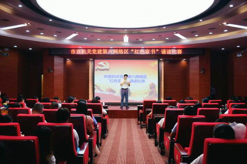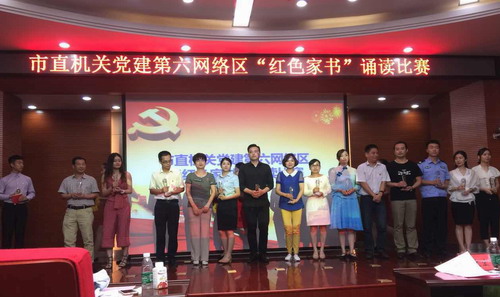 为迎接建党97周年,响应省委书记、省长刘奇同志向全省党员干部发出的“每位同志都要认真读一读红色家书”的号召,根据市委组织部和市直机关工委要求,市直机关各单位认真开展 “诵读红色家书”系列主题活动。6月15日下午,市直机关党建第六网络区在我校逸夫图书馆报告厅举行了“红色家书”诵读比赛。参加诵读活动的有市直机关工委领导、党建第六网络区参赛单位领导和职工代表160余人。