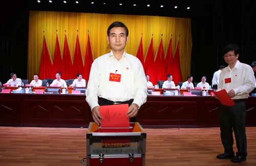在雄壮的《国际歌》乐曲中,中共九江学院第一次代表大会胜利闭幕。