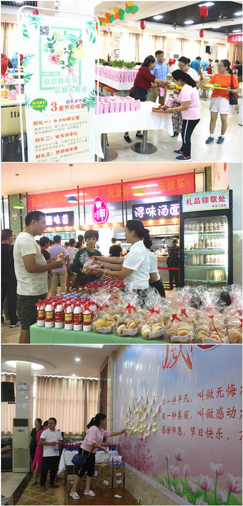 秋菊溢彩,桃李芬芳。9月10日,在第34个教师节来临之际,后勤管理处饮食服务中心举办了形式多样的教师系列服务活动——通过为教职工举办日用品便民展销、教工食堂节日套餐、节日伴手礼、心愿上墙惊喜礼,向全校教职员工表达节日的祝贺。