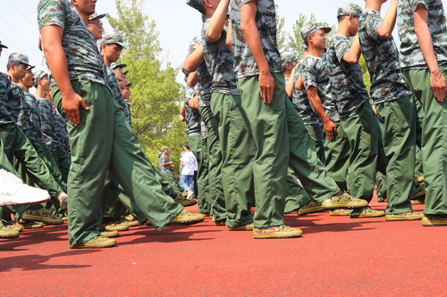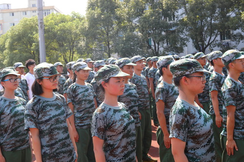 在军训方阵中,刘晓东希望同学们克服困难,认真完成军训这堂大学入学的第一课,要服从教官们的指导,要有严明的纪律意识,希望大家能在军训中磨炼意志、坚强体质、融入集体,在军训会操中取得好的成绩。