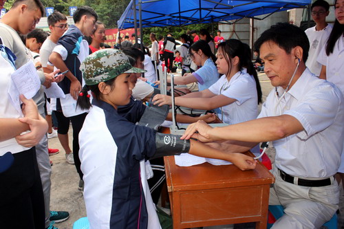 本次新生复查体检分别在八里湖校区、浔东校区和主校区从9月7日开始,月底结束。设有常规检查项目(内科、外科、五官科、嗅觉、色觉、口腔科、眼科、测量身高、体重、血压、脉搏)、肝功能、肾功能和结核菌素试验等内容。利用军训期间每天分两个时间段进行:即每天早6∶00-7∶30在校医院抽血检验,每天上午8:00—11:00 下午2:00-4:00在校医院做常规体检。针对新生体检工作时间紧、任务重特点,校医院及早部谋划,对参与体检的工作人员进行了严格培训,对体检工作流程的每个环节进行了周密的安排部署。目前,新生入学复查体检正在顺利进行。