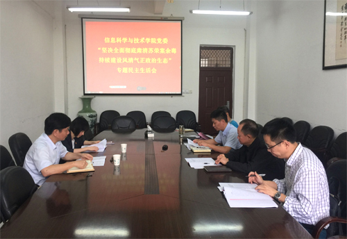 9月27日下午,信息科学与技术学院党委在文友楼514会议室召开“坚决全面彻底肃清苏荣案余毒,持续建设风清气正政治生态”专题民主生活会。校党委委员、副校长王万山同志,党校常务副校长、组织人事部副部长李苏琴同志及信息科学与技术学院党委班子成员参加了会议,会议由学院党委书记袁宜如同志主持。