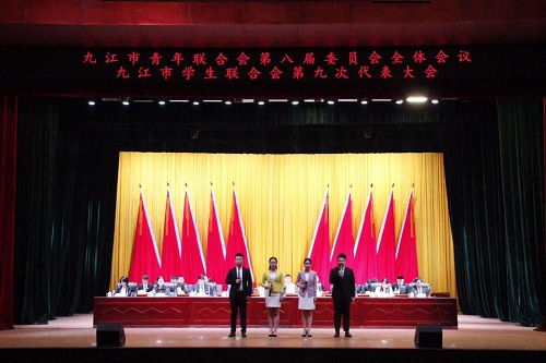 会议期间,我校学生朗诵了《青春组诗》代表九江市大学生为大会献词。成晓龙同学代表九江市学联第八届委员会作了工作报告。