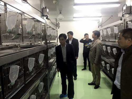 最后考察组一行在南昌大学实验动物中心主任许宝华陪同下参观南昌大学实验动物中心,该中心2018年底竣工,目标是建设成为辐射省内的实验动物供应基地,双方就科研、教学实验动物工作进行了交流。