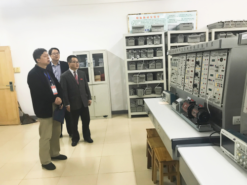 评估专家梅锦春教授实地查看电子工程学院实验实训基地设施、查阅实验登记录。