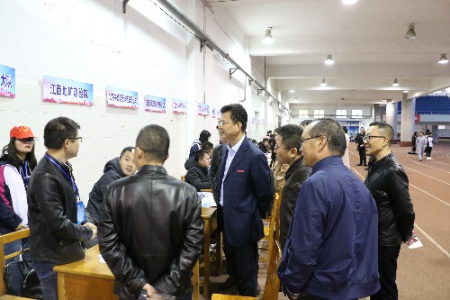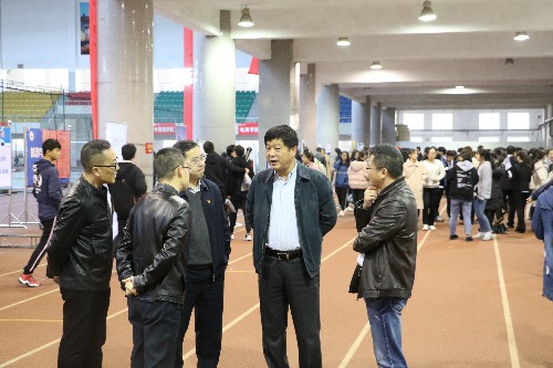 在招聘会现场,校领导与用人单位代表、毕业生代表进行了亲切交谈,详细了解了用人单位提供的岗位、资薪、待遇、环境等信息;详细询问了毕业生的求职意向和应聘情况。