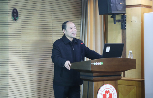 临床医学院/附属医院殷小平副院长代表全院师生对朱铃强教授来院进行学术讲座表示感谢。他说,医院将积极响应学校号召,进一步加强协作,加大科研支持力度,同时期待大家有更多、更新的科研思路和方法,多出成绩,为医院和学校的发展作出贡献。