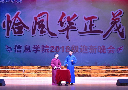 恰同学少年,风华正茂。11月27日晚,信息学院在大礼堂举行了2018级“恰风华正茂”的主题迎新晚会。副校长王万山、学生处处长刘平、校团委书记闫来英,信息学院院长邓安远、党委书记袁宜如、副院长邓长寿,团委学生科老师及2018级全体师生观看此次表演。