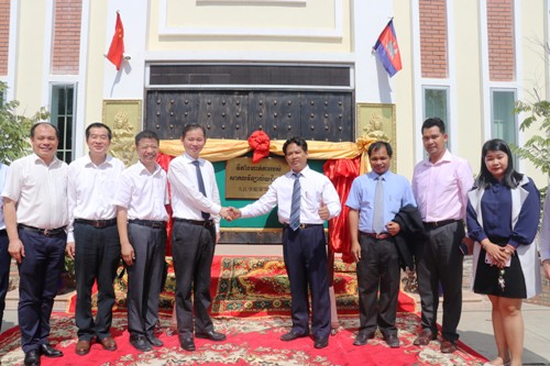 代表团在柬埔寨访问期间还拜访了中国驻柬埔寨大使馆,向左文星参赞通报了代表团访柬相关情况及我校承办柬埔寨孔子学院的有关工作。