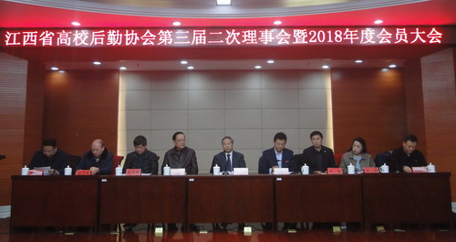 1月12日,江西省高校后勤协会(以下简称“省协会”) 第三届二次理事会暨2018年度会员大会在九江学院顺利召开。中国教育后勤协会会长程天权、中国教育后勤协会专家委员会副主席成冠润,江南大学副校长田备,沈阳大学副校长刘克斌,江西省社联领导许芦峰、江西省教育厅学校后勤与产业办公室正处级干部胡若峰等出席会议。校党委书记赵伟在会议间歇会见了与会各位代表和嘉宾,校长刘晓东教授出席开幕式并致辞,副校长夏启国全程参加了会议并听取了报告讲座。江西省高校后勤协会60多个会员单位及各高校代表130余人参加了会议。会议由江西省高校后勤协会会长汤颖松主持。