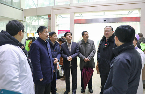 临床医学院/附属医院党委书记张南华,党委副书记、副院长殷小平等在家班子成员向校领导们汇报了该院节前工作情况及春节期间的工作安排,赵伟书记一行听后表示满意。校领导一行先后到教学楼、门诊部、住院部、营养食堂、新门诊综合大楼建筑工地等处,详细了解门诊就诊和病区住院、春节期间排班情况以及新大楼的建设进展。